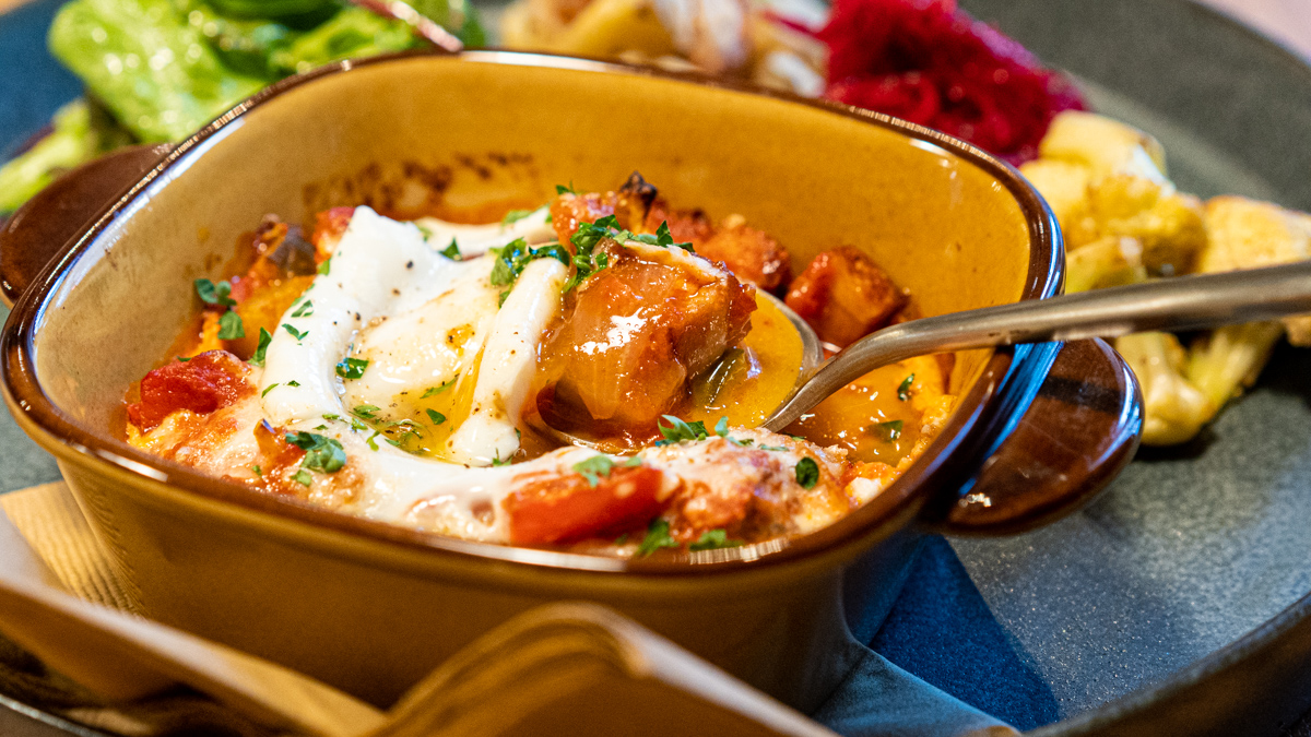 こちらはフランス南部の郷土料理ラタトゥイユのレシピを取り入れ、白井シェフがビストロ風にアレンジを加えたもの。卵にスプーンを差し込めば、トロ~リ黄身が広がる半熟具合がたまりません。