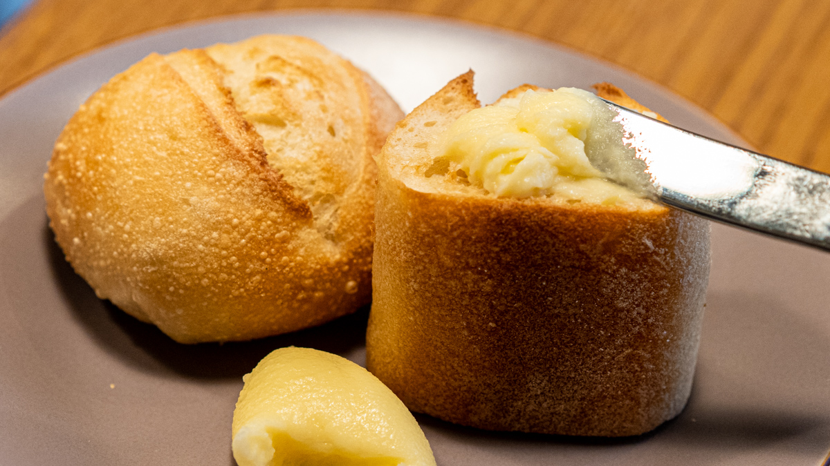 添えられていたパンも、そのおいしさにビックリ。まるでアップルパイのようなリッチな味わいの秘密は、北海道の系列店で手作りしているという「ワインに合う季節の林檎バター」です。たしかにバターではあるのですが、口当たりはさっぱり。酸味や甘味は濃厚で果実味にあふれています。