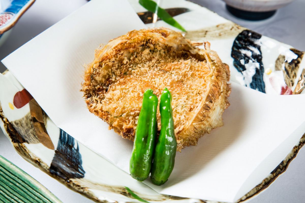 甲羅の中にカニの身を入れてからりと揚げた甲羅揚げには、毛ガニのうま味が丸ごと詰まっていて、香ばしい風味が甘味を引き立てます。