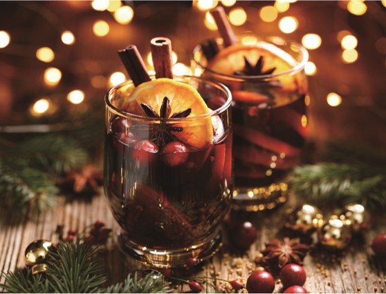 8~9世紀頃にドイツで生まれたクリスマスの定番「グリューワイン」は、ワインにはちみつ、ハーブ、ベリーなどを加えて煮て飲んだのが始まり。飲みやすくて、寒い冬におすすめのカラダが温まるドリンクをまずは1杯。