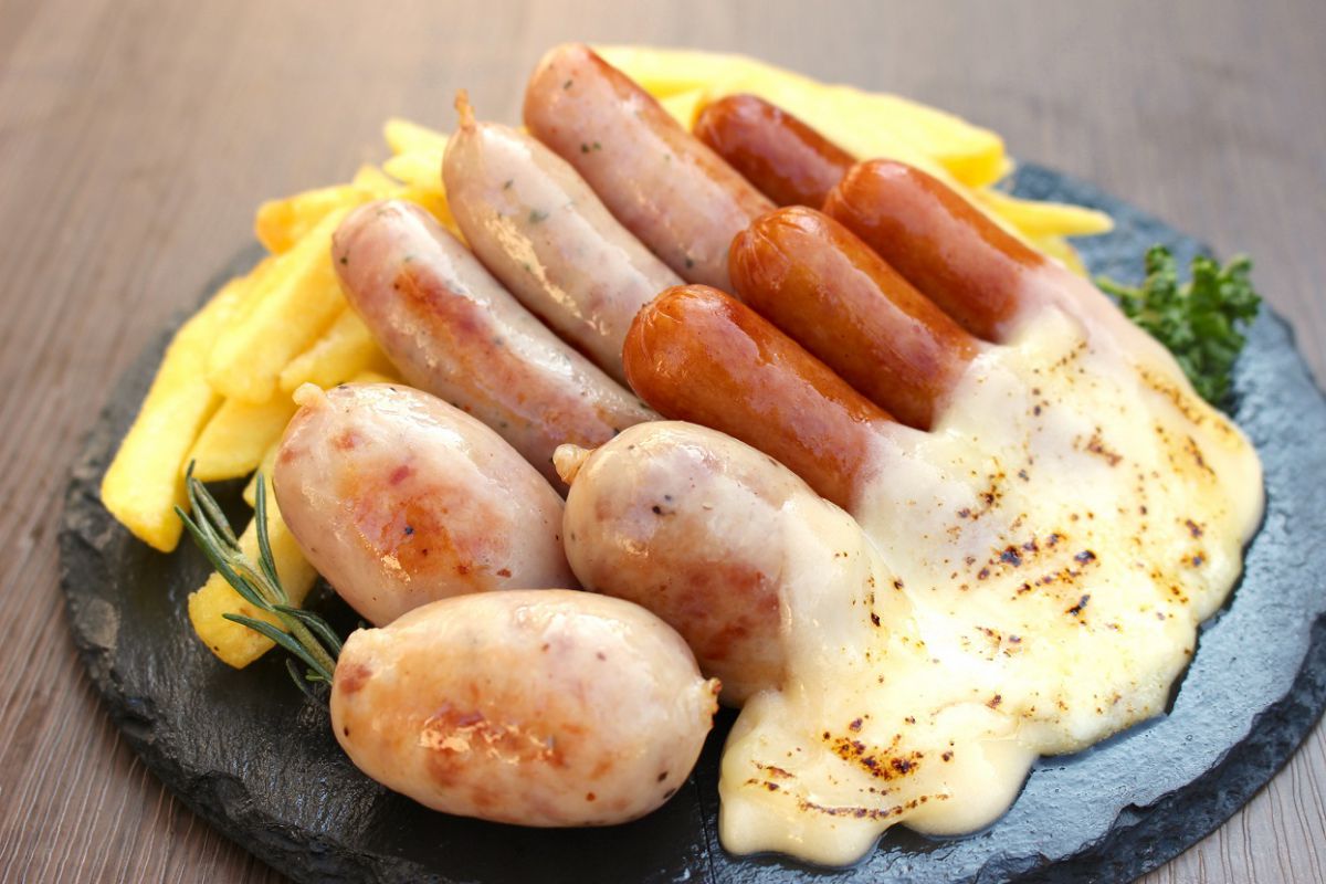 ドイツ直送樽生ビールを片手に、プリッとした食感と溢れ出るジューシーな肉汁がうれしい3種類のドイツソーセージを。炙りチーズとの相性も抜群です。
