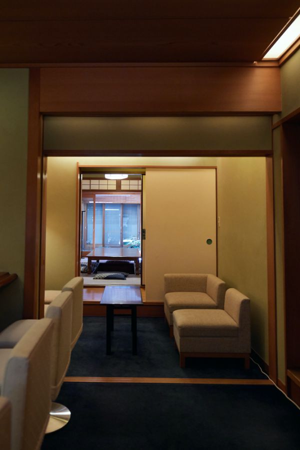 手前がカウンター、奥は坪庭を望む座敷とかなり広い間取りになっていて、思い思いの場所で寛げます。