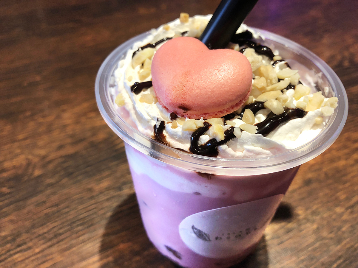 “ルビーの輝き、キラキラした恋の味”をテーマに、ピンク色のチョコレート「ルビーチョコレート」をふんだんに使用、クリームの上に乗ったハートのマカロンにも胸キュン必至なドリンクです。