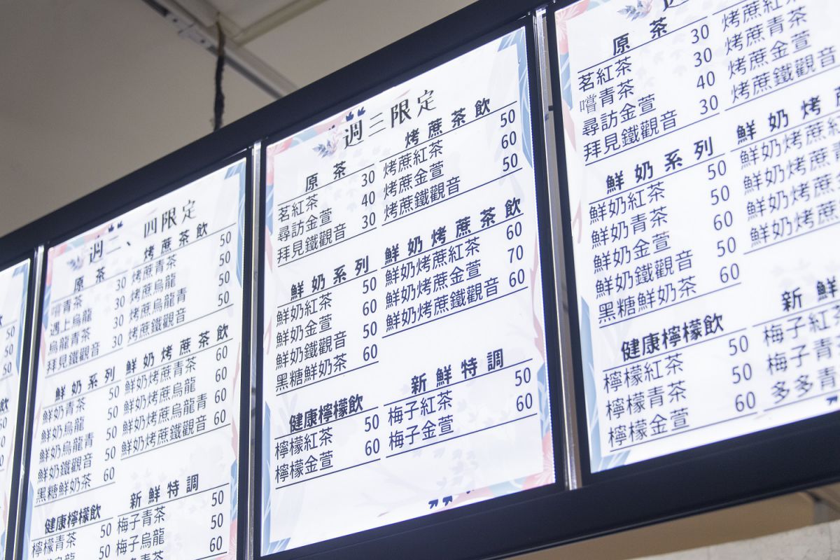 看板メニューの綠豆沙以外にも50種類ほどのメニューがあり、約20種のメニューを日替わりで出しています。時間が経ったお茶は入れ直し、常に新鮮でおいしいドリンクを提供するのも鄭さんのこだわりです。