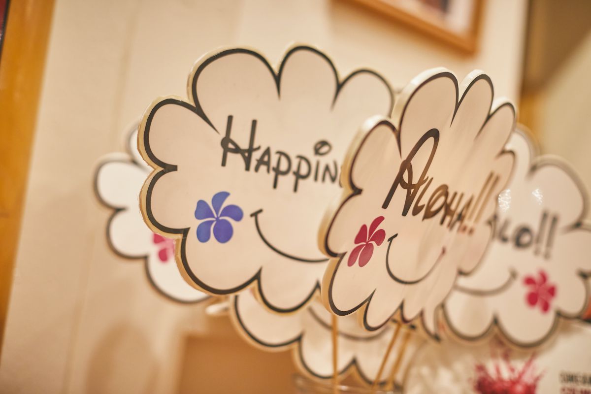 店内には自由に使えるハワイアン・フレーズの吹き出しがいろいろ用意されているので、撮影タイムも楽しめます。