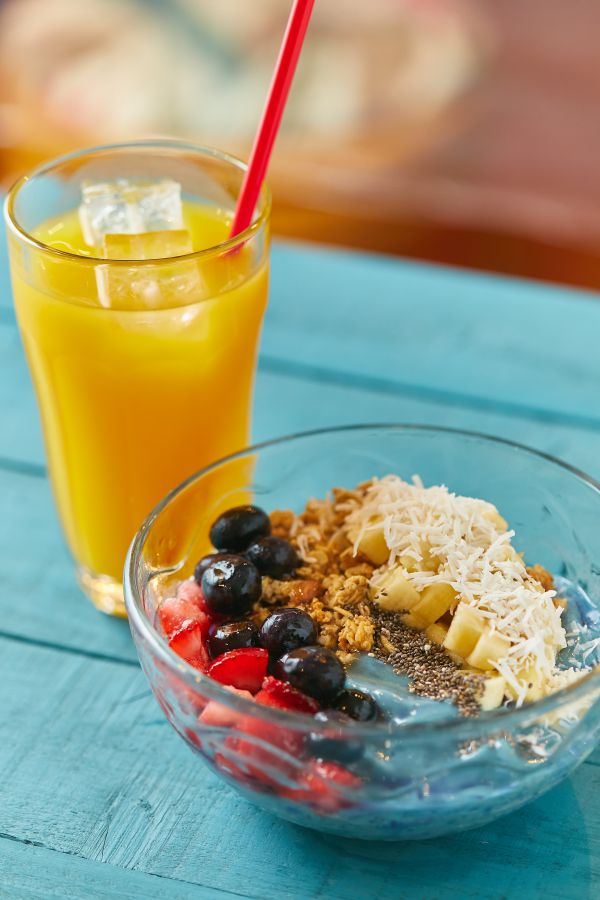 次に紹介する2つは色とりどりのハワイアンボウル。1つ目は水彩画のように鮮やかな青が印象的な「ブルーマジックボウル」です。これがなんと天然カラー。青の正体は、スーパーフーズのスピルリナ。地球上に誕生した最古の植物といわれる藍藻類の一種だそう。