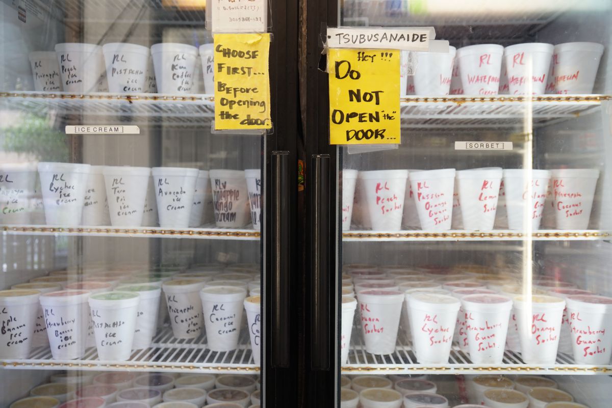 「ヘンリーズ・プレイス」は家族経営の小さなフルーツショップ。こちらで人気なのがフルーツを使って手作りするアイスクリームとソルベです。冷蔵庫にずらりと並ぶアイスはとにかくフレーバーが豊富!ストロベリーグアバやスイカ、パイナップルマンゴーなど定番のフルーツ系のソルベから、コナコーヒー、アボカド、ピスタチオといったハワイらしいフレーバーのアイスクリームまでバラエティー豊かに揃っています。