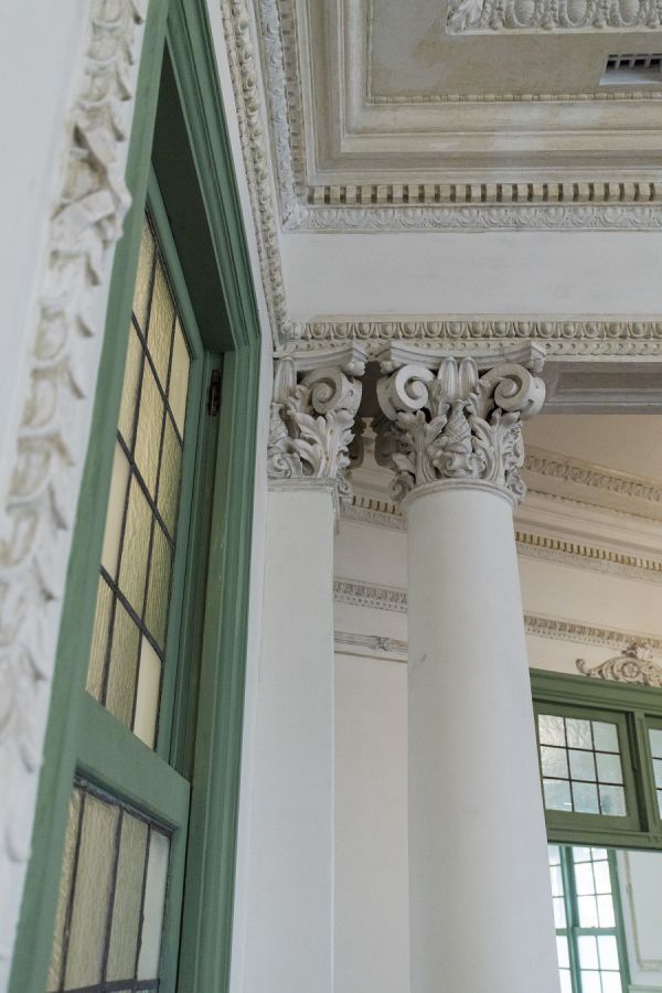 一部は建設当初の物がそのまま残され、破損の大きかった部分も昔の資料をもとに忠実に再現されています。石こう装飾の復元に関する資料なども2階の展示室で見ることができます。