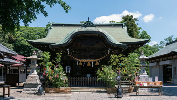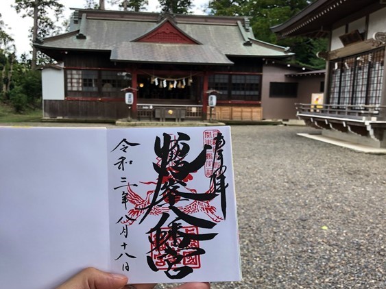 市街地から離れ、田畑家と緑濃い森に囲まれた里山にぽつんと立つ小さな社です。産業指導の神、安産の神として知られる経津主大神(ふつぬしのおおかみ)をお祀りしています。 また、名物のスイカをモチーフにしたのは御朱印だけではありません。お守りや御朱印帳もスイカのデザインでとってもキュート!全部欲しくなっちゃいます。
