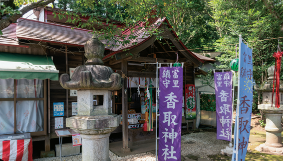 富里市にある「香取神社(かとりじんじゃ)」。富里市は、皇室にも献上しているスイカの名産地。毎月1日と15日で交互に果肉と皮目模様の御朱印がいただけます。祭神におまいりすれば、スイカのように願いが大きく実るかも。