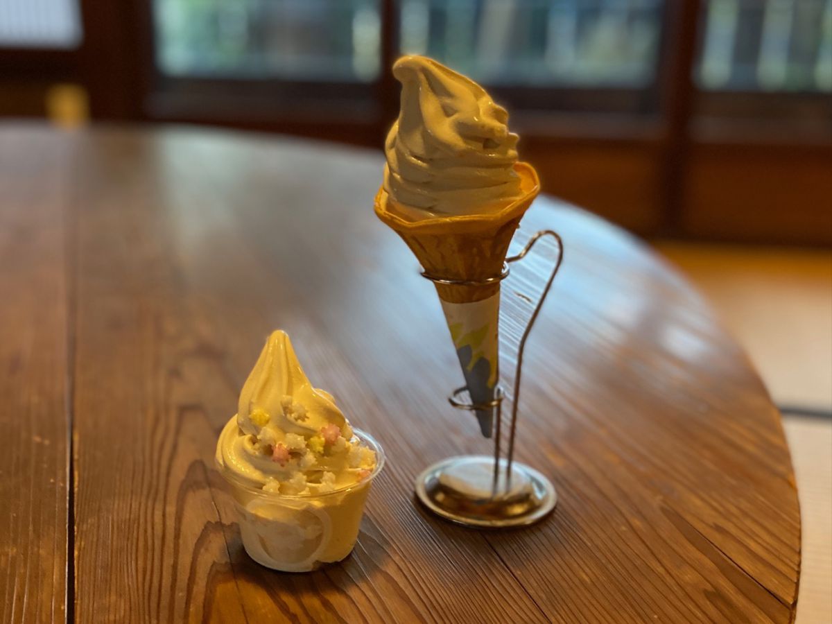 工場見学を終えたら、隣接する直営ショップ「Y&Y GARDEN」へ。こちらでは出来たての『ヤスダヨーグルト』の全商品が勢ぞろい。ソフトクリームやフローズンヨーグルト、ワッフルなどを食べられるほか、チーズ、ケーキなどここでしか買えない工場限定品も。乳製品好きにはたまりません。屋外のテラスのほか、木の温もりを感じられる屋内イートインスペースもあるので、旅の途中の休憩スポットとしてもおすすめです。