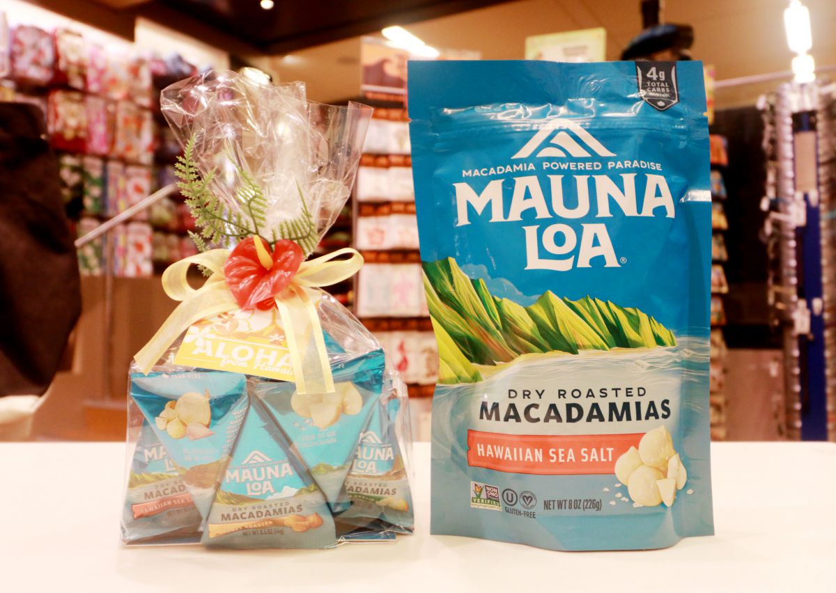 ハワイ島で育ったマカデミアナッツを香ばしくローストした「マウナロア」もおすすめです。シーソルトやマウイオニオン、キャラメルなど、フレーバーも色々。大袋のほか、小さな三角形のパッケージに入ったマカダミアナッツはバラマキみやげにも最適です。「マカダミアナッツ・アソートタイプ 12個入」$13.49(写真左)、「ドライロースト・マカダミアナッツ ハワイアンシーソルト」$13.99(写真右)。