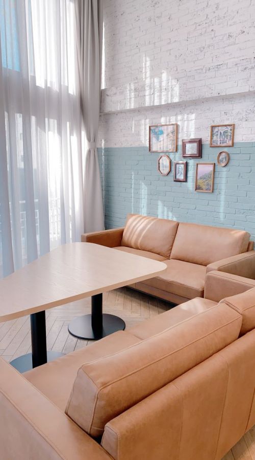店内はほとんどがソファ席。席と席の間隔も広いため、安心して食事が楽しめますよ。