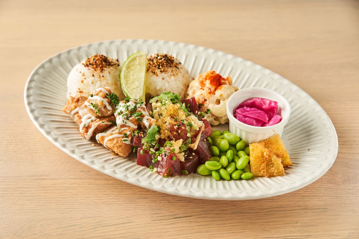 今回はしょうゆやごま油で味付けしたマグロの「ポケ」とエビをガーリックで炒めた「ガーリックシュリンプ」をチョイスしましたが、ほかにもマグロをスパイシーに味付けした「スパイシーアヒ」やシイラという魚を揚げた「マヒマヒ」からもセレクト可能。さらに付け合わせのご飯も白ご飯、わかめご飯、五穀米から選べるというからうれしいですね!