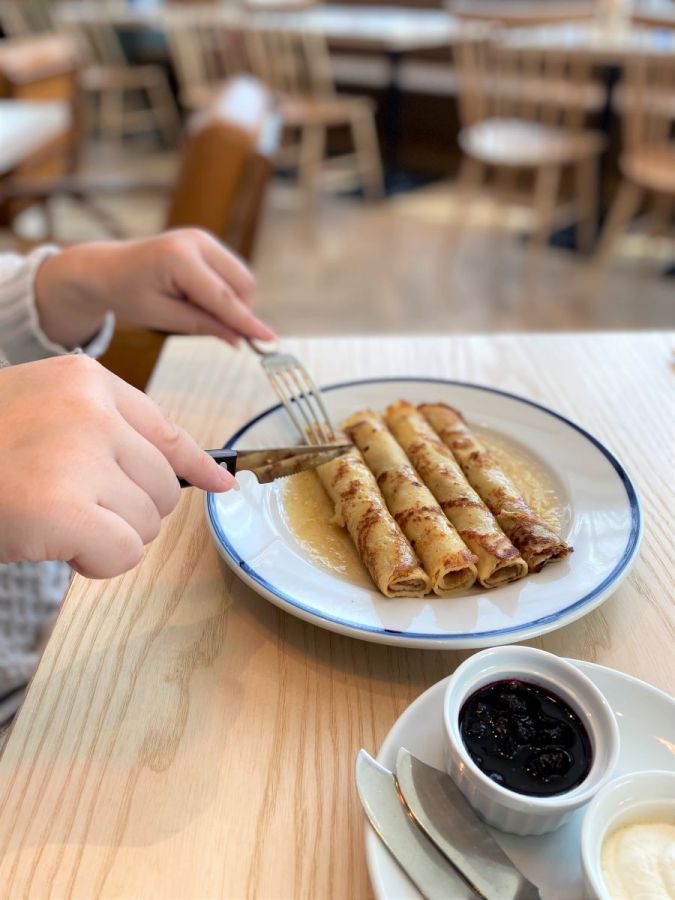 もちもちしっとり生地にあたたかいメープルバターがおいしすぎる!「ロールパンケーキ」
