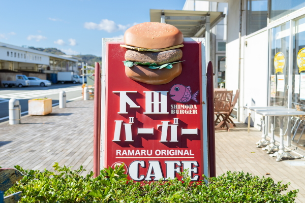静岡県下田市の「道の駅 開国下田みなと」内にある、「Cafe&Hamburger Ra-maru」。金目鯛を使ったご当地グルメ「下田バーガー」や、オーナーが釣りあげたカジキを使う「カジキバーガー」など、ここでしか食べられないメニューが盛りだくさん!下田のおいしいハンバーガーを、あますことなくいただいてきました。