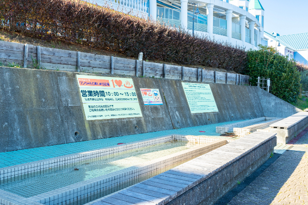 施設内には日帰り温泉「朝日の湯 シーサイドスパ」もありますが、足湯で気軽に温泉気分を味わうことができちゃうのは、うれしいポイントです。