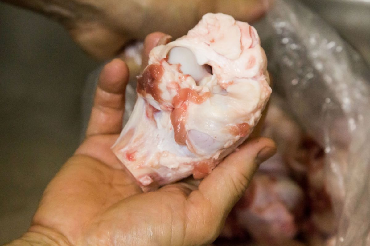 スープに使うゲンコツは、北海道産「四元豚」のもの。それらと道産の鶏ガラ、香味野菜などを寸胴に惜しみなく入れ、じっくり煮出します。