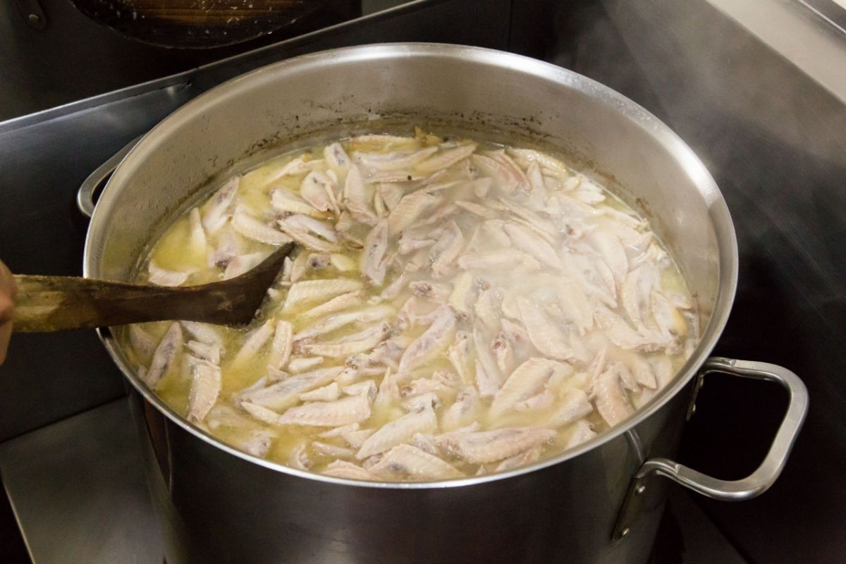 素材からうま味を抽出し、うっすらと白濁したスープ。ここからさらに、保温しながら一晩寝かせることで口当たりをよりまろやかにしていきます。