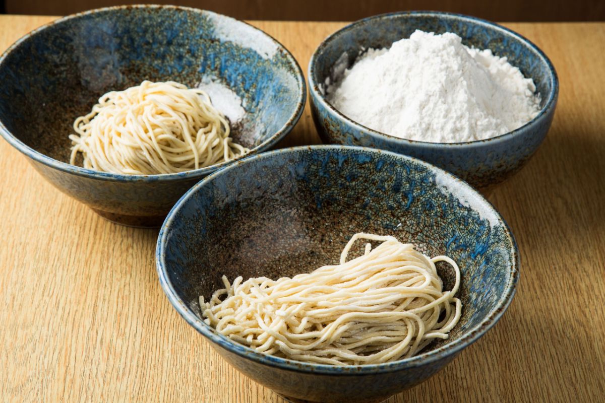 麺は「ゆめちから」や「五稜星」などの道産小麦をブレンドした、コシの強い自家製麺。スープに合う麺を追求しています。また、麺のコシやなめらかさを左右するかん水にはモンゴル産の天然かん水を使うなど、小麦だけではなく細部まで手を抜きません。
