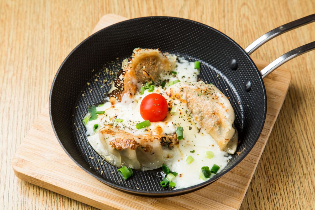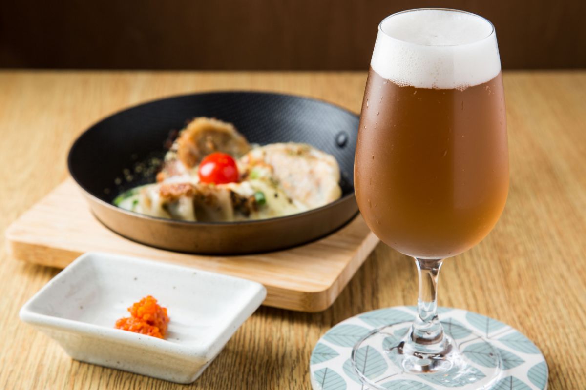 ビールと合わせるおつまみはやっぱりギョーザ! 実は一粒庵さんはギョーザも自慢なのです。「チーズギョーザ」500円はひだかホエー豚と行者ニンニクをタップリ使ったあんを、道産小麦のもっちりとした皮で包んだ人気メニュー。