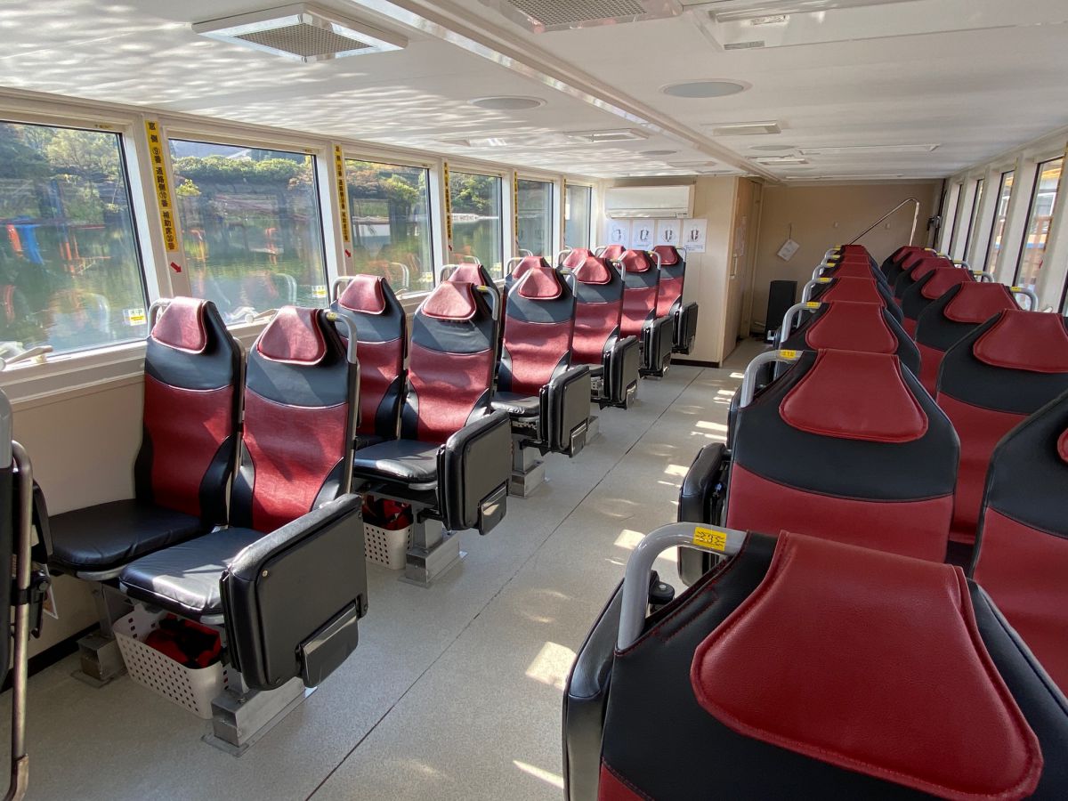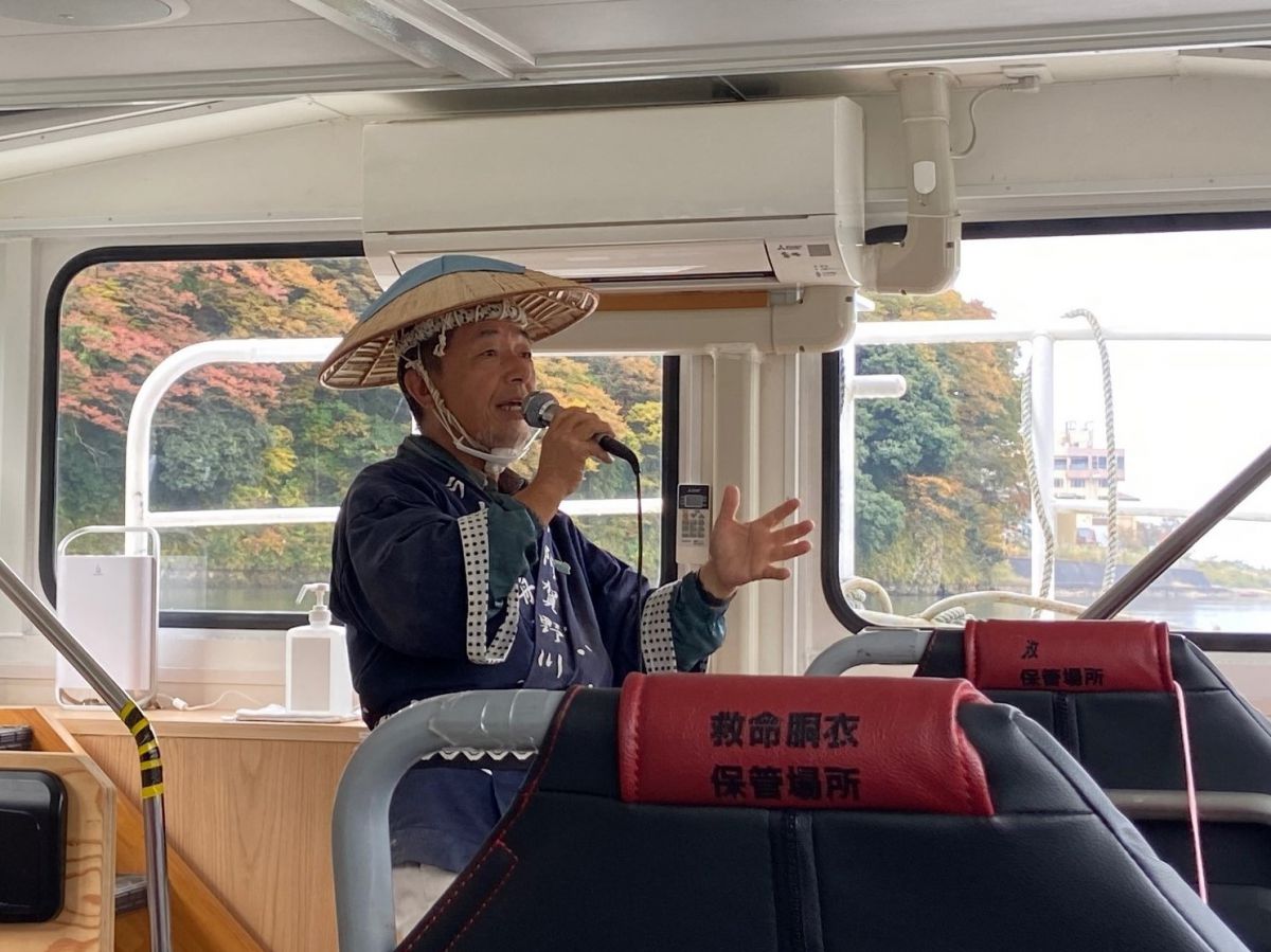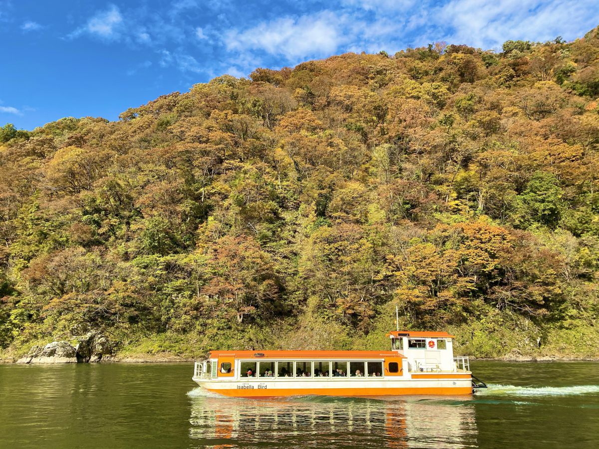 「イザベラ・バード」と名付けられた遊覧船は、水流を噴射して進むジェット船。といってもスピードは上げないので揺れたりはしません。