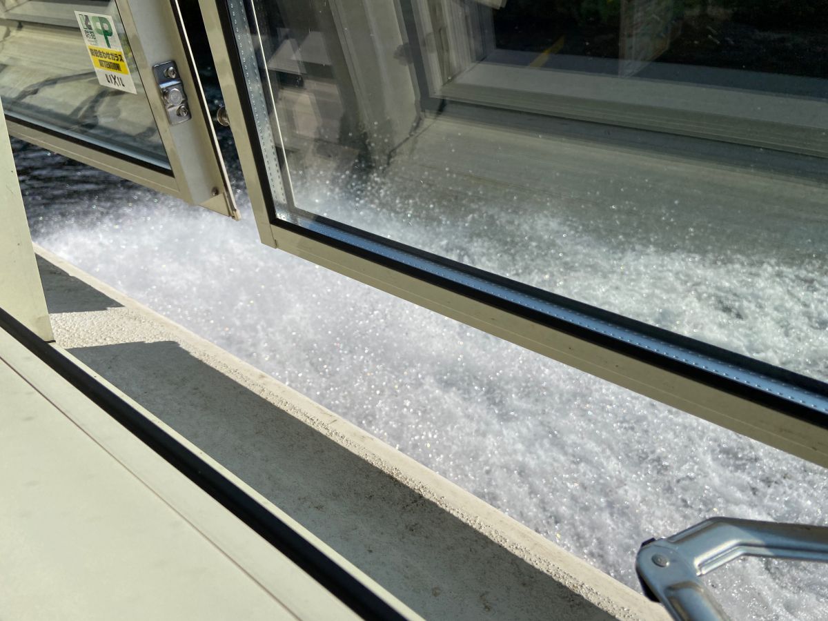 客席の窓を開くと阿賀野川の川面がすぐ近くに。気持ちのいい風が入ってきます。