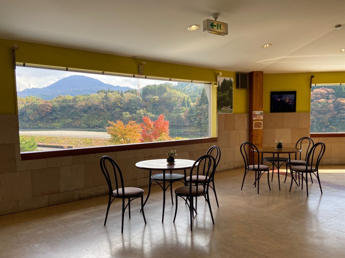 食後は2Fの展望フリースペースで一休み。阿賀野川と山々を彩る紅葉が一望できました。道の駅は阿賀野川沿いというロケーションなので、川岸を散策するのもいいですね。