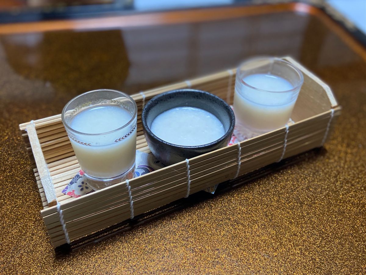 『ブナの宿 小会瀬』は、食事も楽しみ。店内で職人さんが打つ蕎麦や自家製のどぶろくが名物です。特にどぶろくは、さすが酒どころ新潟、香り高く、お米の甘味も感じられて本当に美味しかったです。テントサウナと露天風呂に入った後だったら、お酒を飲む前の水分補給も大切に。
