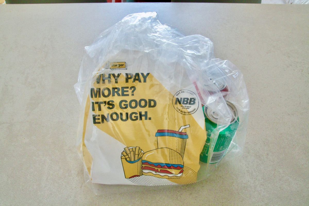 新世界系列の大型Eマートが展開するノーブランドというブランドで、包装や余計な広告を打たないことで値段を下げて提供する消費者に優しいブランド。Eマートでは、このブランドを購入できるスペースがあったり、ノーブランドだけを扱うスーパーが登場したりしていましたが、このラインからハンバーガーショップができ、味も良く、値段も安いので、最近のデリバリーでも人気ランキングに入るほど。