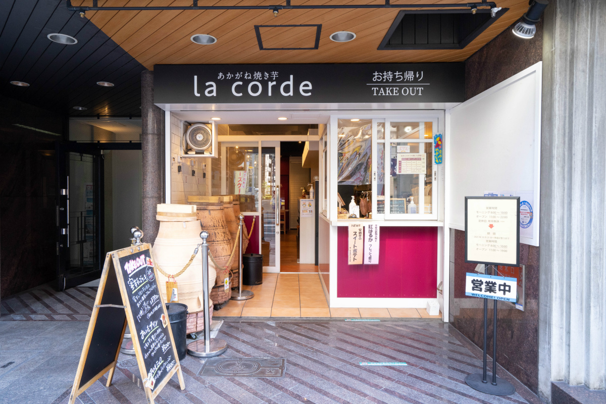 「あかがね焼き芋 la corde」があるのは、大阪のビジネスの中心地大阪メトロ「堺筋本町駅」から北東へ徒歩5分ほどの場所。PC用アプリの開発を専門とする会社の社長が趣味で作っていた焼き芋がいつの間にか評判を呼び、「もっと多くの人に食べてもらいたい」と実店舗オープンに至ったのだそう。