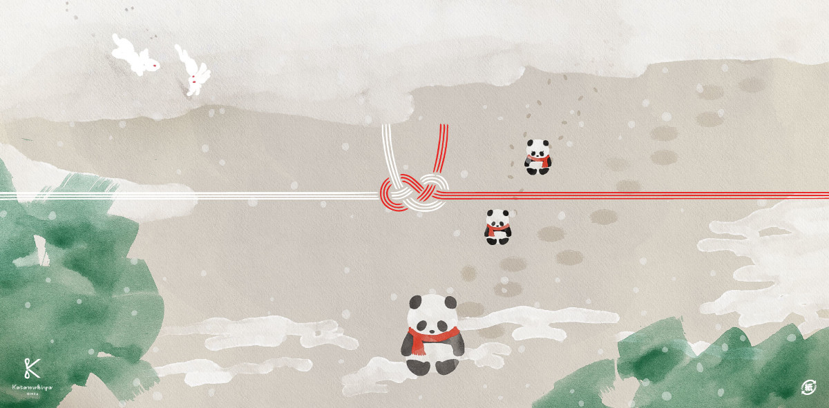 みんなでマフラーを巻いて、どこかにおでかけのパンダ一家のほのぼのとしたオリジナルデザインの掛け紙をかけてもらえます。