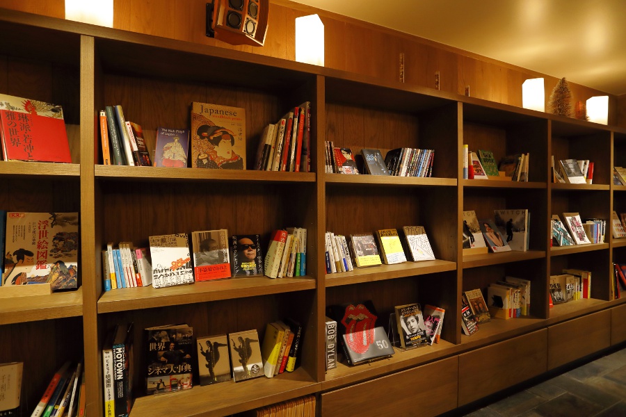 本棚に並ぶ書籍や写真集は、京都を中心に展開する大垣書店がセレクトを担当。食や音楽などさまざまな文化にまつわる本はもちろん、京都に関する書籍も多数あり、手に取って読むことはもちろん、購入することも可能です。