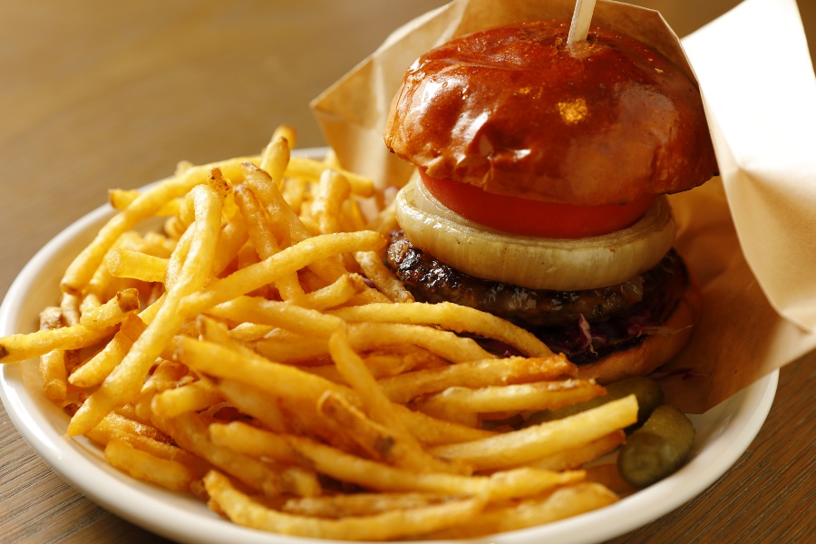 ランチやディナーでぜひ味わってほしいのが、BBC京都のハンバーガー1210円。京都・松ヶ崎の人気パン店、吉田パンのバンズを用い、合い挽きパティ、グリルオニオンを豪快にサンド。4種類のオリジナルソースで奥行き感のある味わいに仕上げられています。ほかにも、チェダーチーズバーガー1408円など、4種類からセレクト可能です。ランチタイムは、サラダに加えコーヒーと紅茶が選べるドリンクがセット。しかもドリンクは14時までならおかわり自由のサービスもあります。