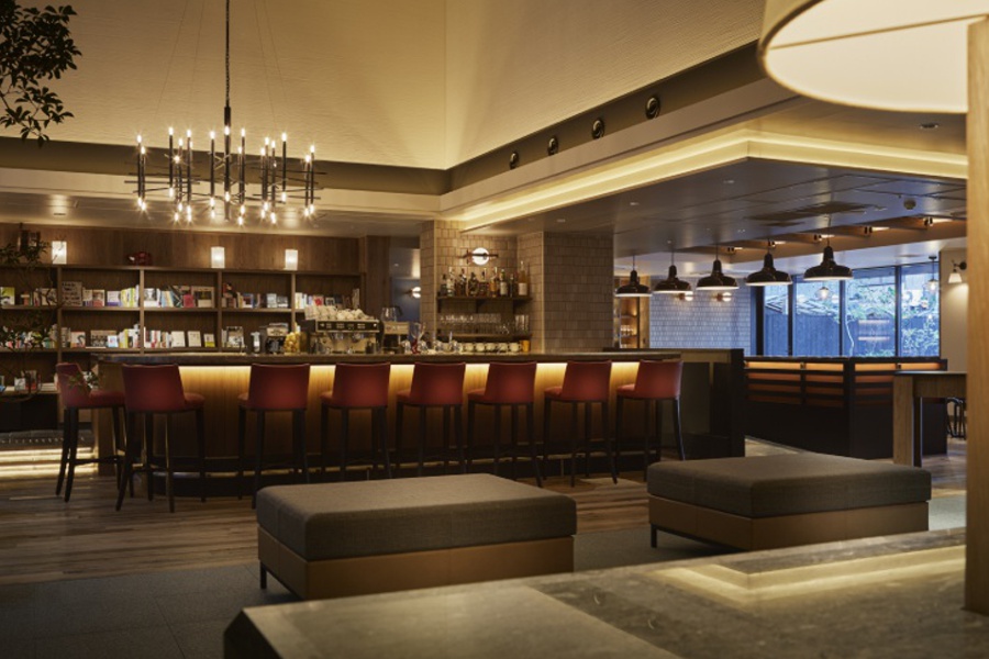 京都らしい落ち着いた雰囲気が漂う、ホテルリソルトリニティ京都 御池麩屋町の1階にあるBLUE BOOKS cafe 京都。ホテルのラウンジ・レストランとしての役割も果たすこちらのカフェは、東京・南青山のジャズクラブ・ライブレストラン、ブルーノート東京などを運営するブルーノート・ジャパンがプロデュース。「本と音楽と食」をテーマに、寛ぎにこだわりぬいた空間と音楽、料理やドリンクを提供しています。