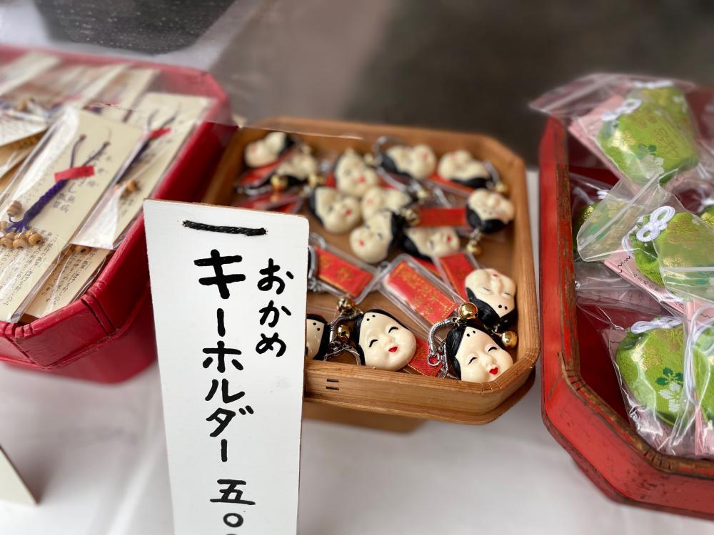 おかめ伝説で知られるお寺だけあって、手ぬぐいやキーホルダーなど、おかめグッズもいろいろとありました。これまたかわいいですね。