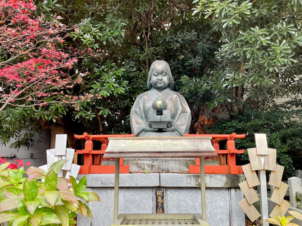 一つ目は、縁結びや夫婦円満にご利益があることで知られる「おかめ塚」。自らの命を犠牲にして夫の名誉を守った妻・おかめ(阿亀)の像は、厄除・招福信仰のシンボルといわれています。また、千本釈迦堂のおかめのエピソードは、全国のおかめ信仰の発祥となっているのだとか。ふくよかな笑顔を拝むだけで癒されます。