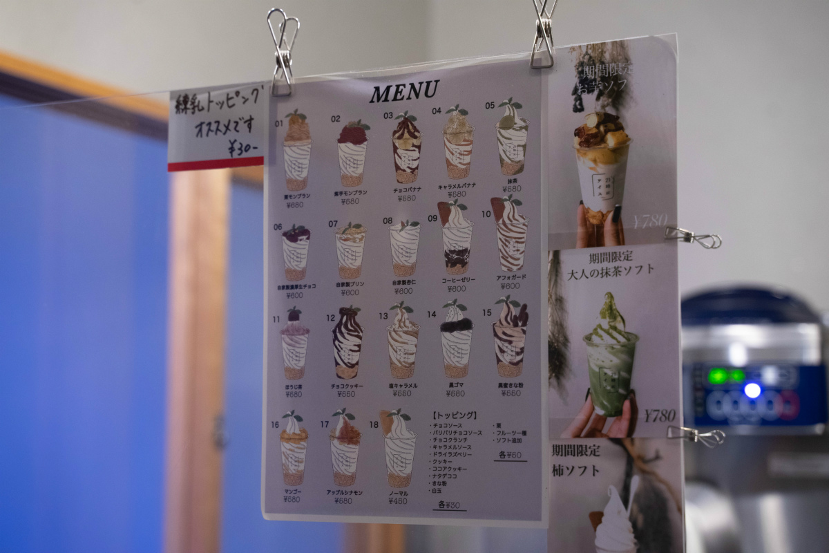 ソフトクリームといえば明るい陽光の下で快活に食べるもの、というイメージですが、こちらのオープン時間は“3時のおやつ”も過ぎた夕方16時30分。冬場なら日も暮れ始める時間帯ながら、「小腹をちょっと満たしたい時やディナー後にもぴったり!」と意外な人気を博しています。