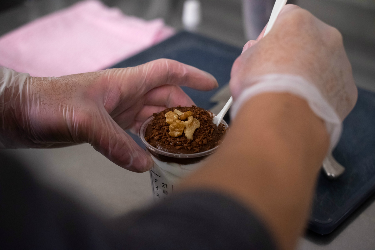 「パフェほど気取らず、手軽に後口すっきりのスイーツが食べられる」と評判で、ディナーが終わる21~22時頃がピークタイムに。テイクアウトのみなので、さっと訪れてさっと受け取れる手軽さも人気のポイント。