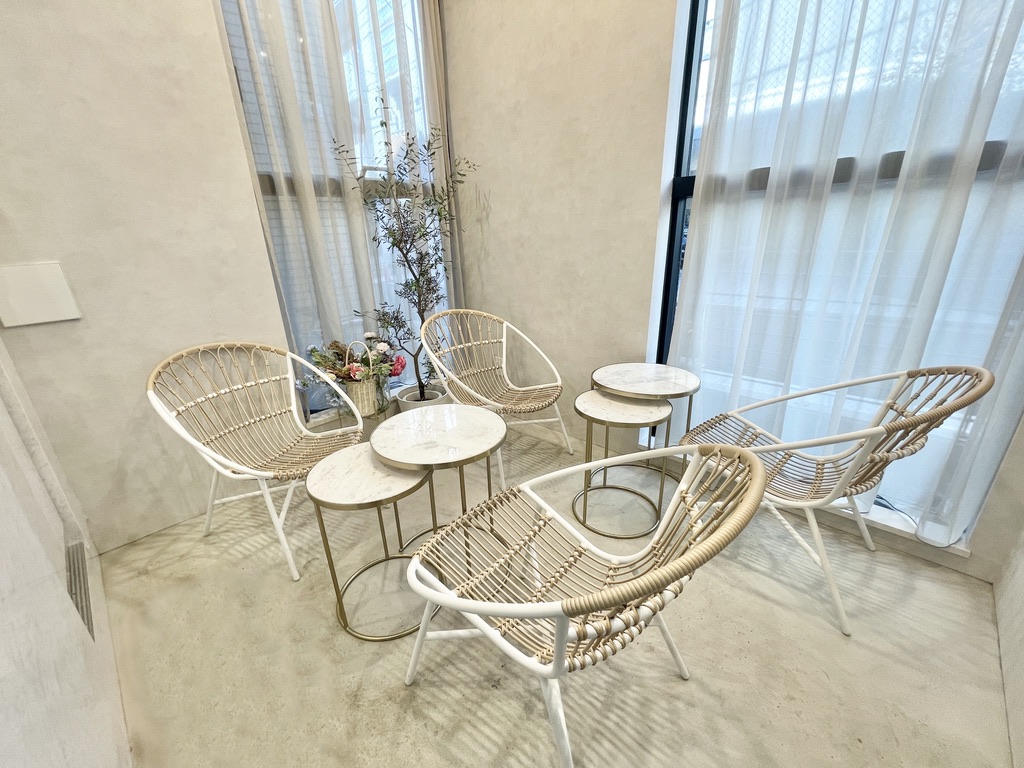 テラス席はテーブル、クッション、ベンチなど、どこの席に座るかで写真の雰囲気も変わるため、何度でも足を運びたくなっちゃいます♪