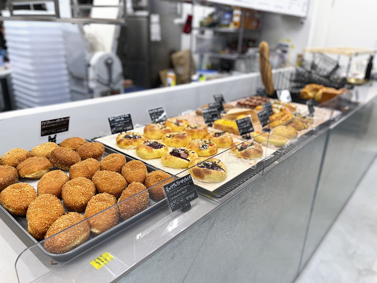 店内に入るとまず目に飛び込んでくるのは、たくさんのおいしそうに並ぶパンと、その奥にある店舗内に併設されている広いキッチンスペース。