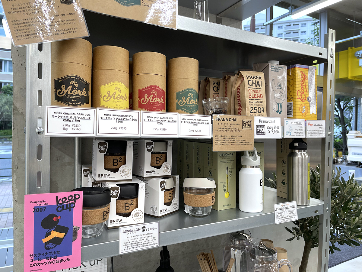 そのほか、コロンとしたフォルムが愛らしいロゴ入りのカップやボトル、オーストラリア産チョコレート&チャイなども販売しています。