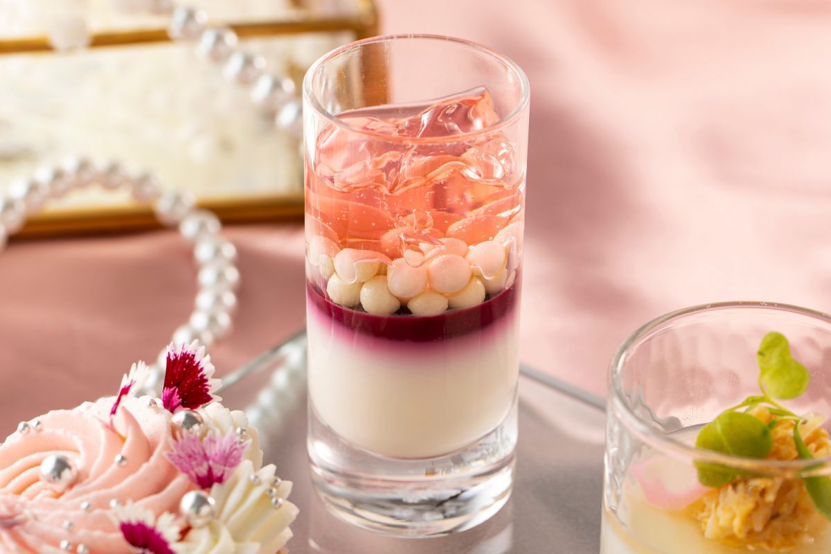 「コンラッド東京」のバー&ラウンジ「トゥエンティエイト」にて開催中の「ウィンター・ビジュー」アフタヌーンティー。カシスとライチのゼリーが宝石のように輝きバニラブルボンティーが香る「ルイボスティーパンナコッタ」、パールのようなビジュアルとさわやかなオレンジのムースが魅力の「レモンガナッシュ」や「バラのマカロン」などのスイーツ5種がお目見えします。