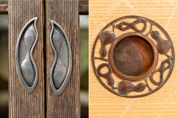 襖の引き手にもさまざまな形のひょうたんや月がかたどられていて、とても素敵。ひょうたんと月のモチーフはほかにもたくさんあるので、ぜひ探してみてくださいね。