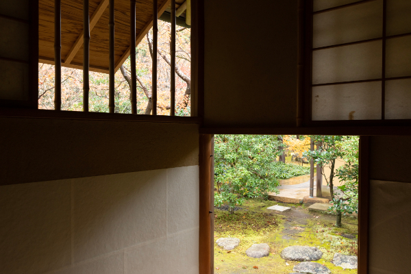 茶室の中からも日本庭園を眺められます。美しい景色を眺めながら玉露をいただくのは、心安らぐ贅沢なひととき。
