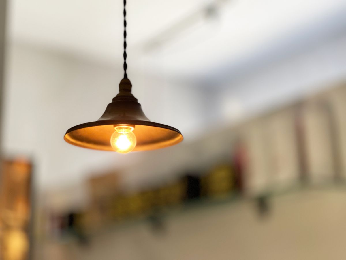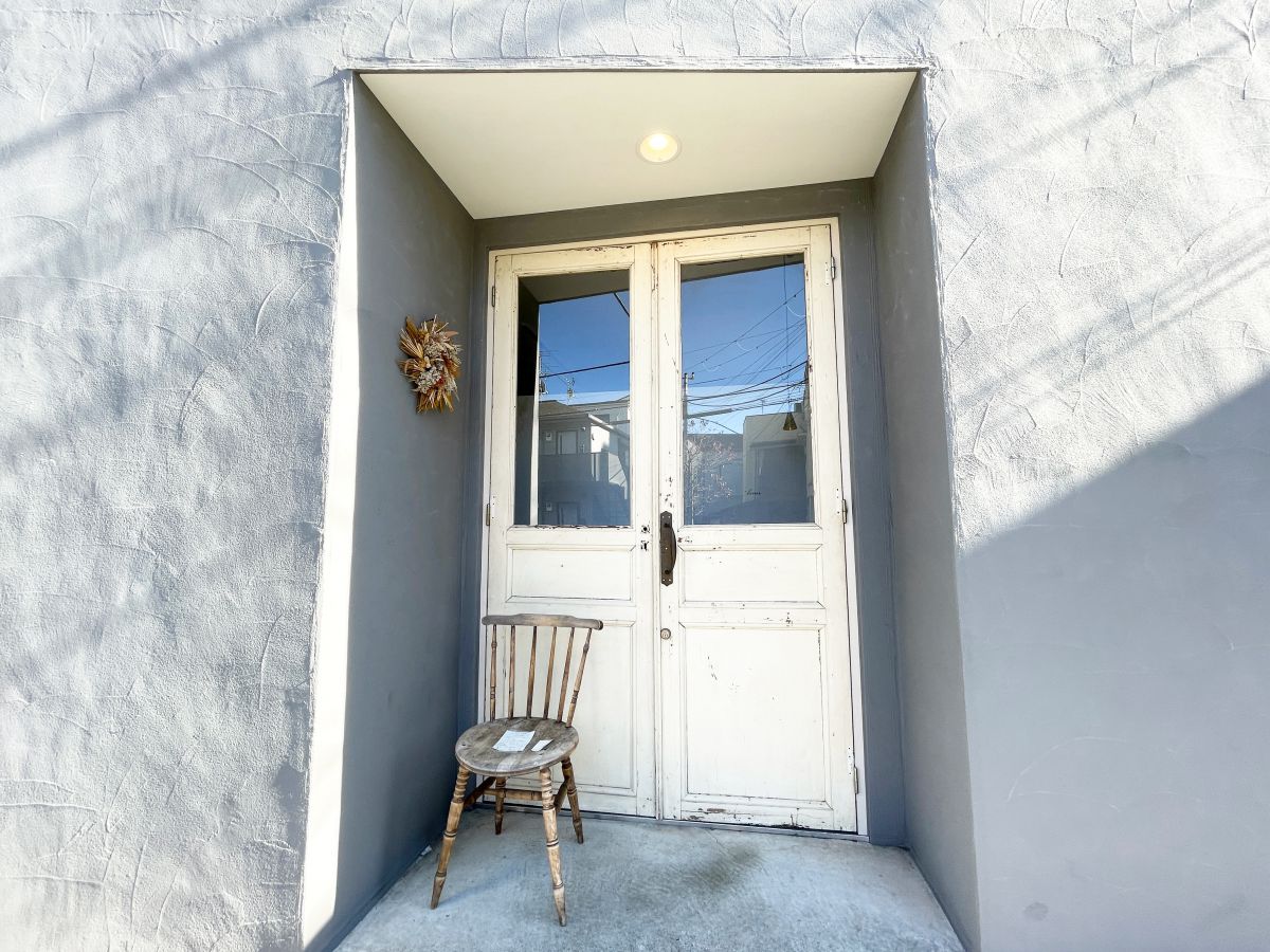 おしゃれな扉をくぐると、ぽつんと描かれたロゴとランプが出迎えてくれます。