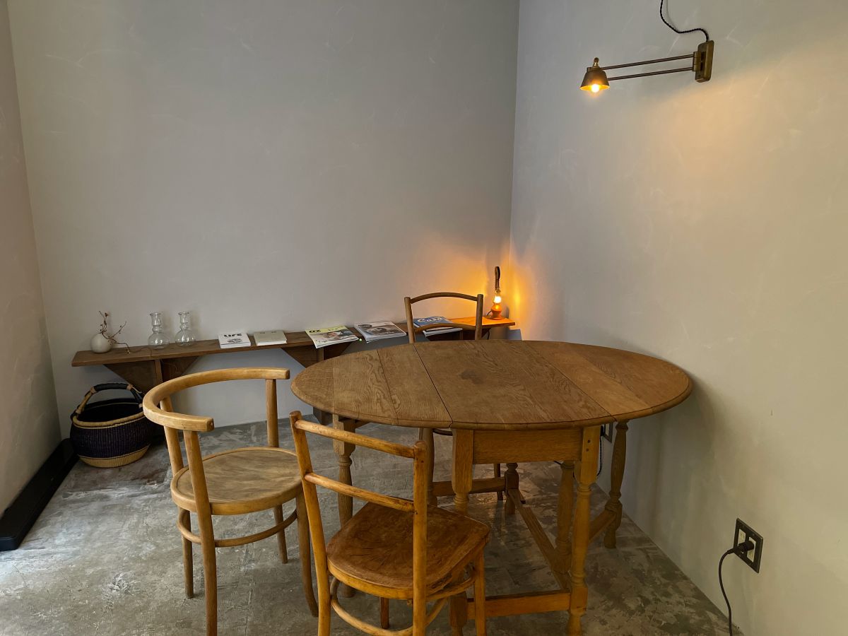 もともと、同じエリアにあるカフェ「torse(トルス)」の仕込みスペースとして計画していた場所に少し余裕があり、せっかくならばと空いたスペースで始めたのがこの「lueur」なんだとか。開放感があり居心地のいい「torse」とはまた違った落ち着く空間で、ここでしか食べられないタルトが味わえます。