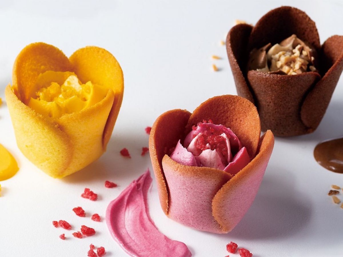かわいいチューリップと華やかなローズがひとつになった、とびきりよくばりなショコラスイーツ「チューリップローズ」は、外側のチューリップの花びらはシャリシャリッと繊細なラングドシャクッキー、中に絞り込まれた香り高いローズの花はとろけるホイップショコラ仕立てです。味は、ストロベリーとラズベリーが甘酸っぱい「ベリー」、キャラメルマキアートのコクが広がる「キャラメルナッツ」、パッションフルーツとマンゴー香る「パッションマンゴー」の3種類。一輪ごとに贅沢な美味しさが口いっぱいに広がり、“スイーツの花園”を楽しめます。