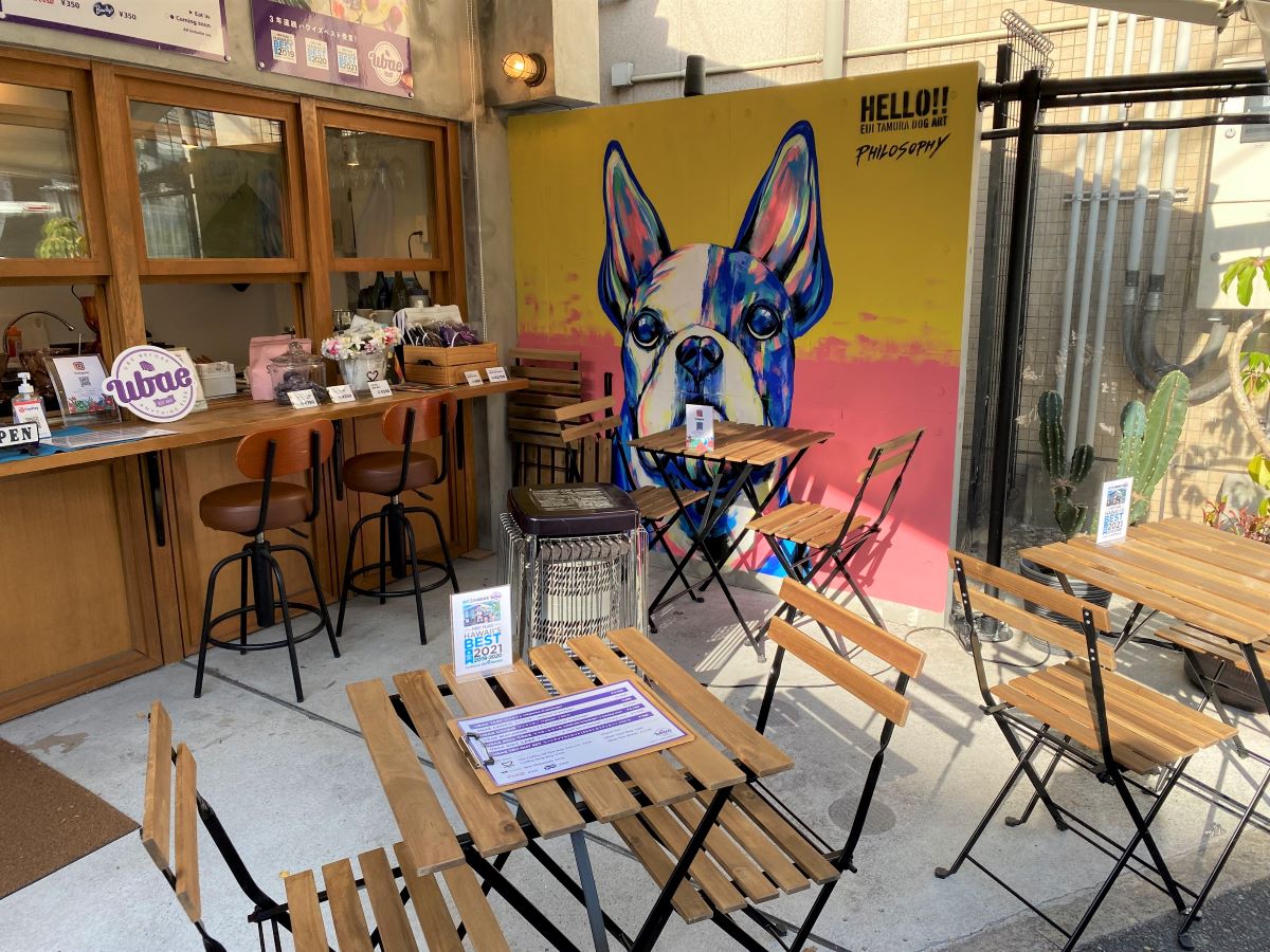 原宿駅から徒歩9分。「Philosophy Harajuku」との期間限定コラボショップとしてオープンしたのが「UBAE + Philosophy Harajuku(ウベフィロソフィーハラジュク)」です。席はテラス3席、店内に2席とこじんまりとしていますが、その分スタッフの方との距離感も近く、ハワイのフレンドリーな空気が感じられるほど。冬でもストーブが置かれているので、暖まりながらスイーツを食べることもできちゃうんです!うれしい心遣いですね。