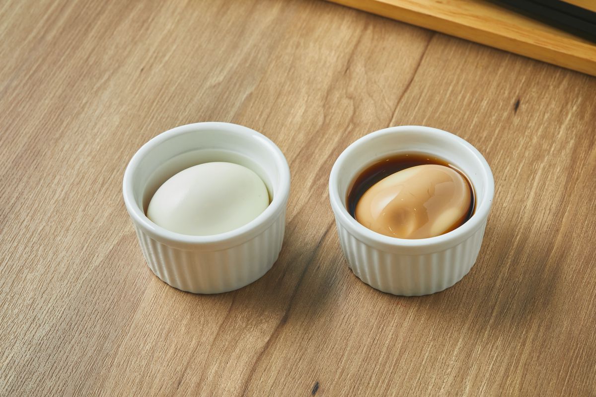 オプションで選べる半熟卵と煮卵は各110円。たまごの半熟加減は茹で時間、冷ます時間を秒単位で計算してあるので、いつも同じクオリティなのが嬉しいポイントです。